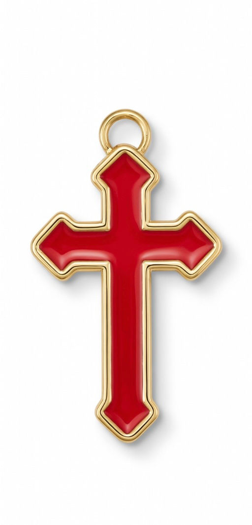 Gold Rose Cross Pendant with Emerald Heart Stone