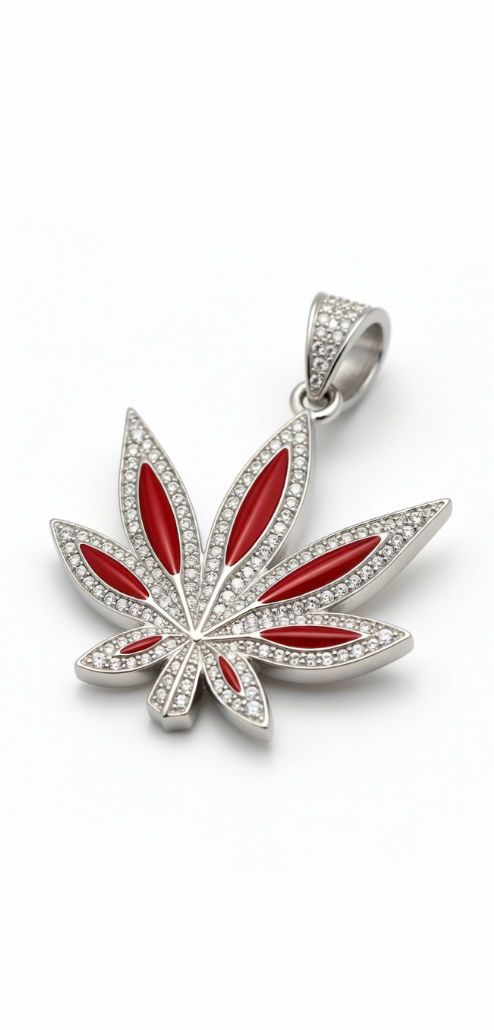 Crimson Leaf Diamond-Encrusted Pendant