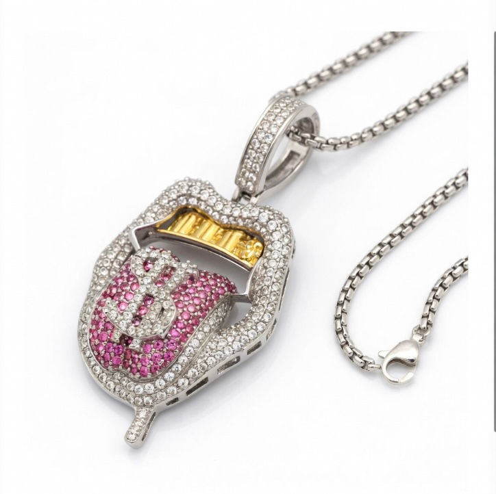 Dual-Tone Crystal Cross Pendant (Black & Gold Accents)